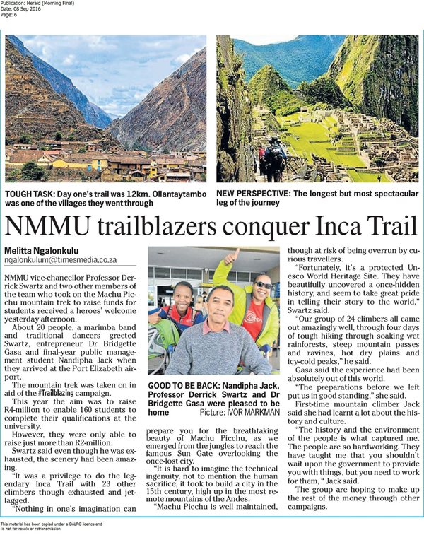 NMMU trailblazers conquer Inca Trail