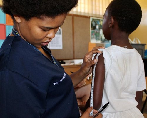 HEALTH IN ACTION: A student from the Department of Human Nutrition and Dietetics conducting an assessment at a Zwide primary school as part of the Siyaphakama health screening initiative.