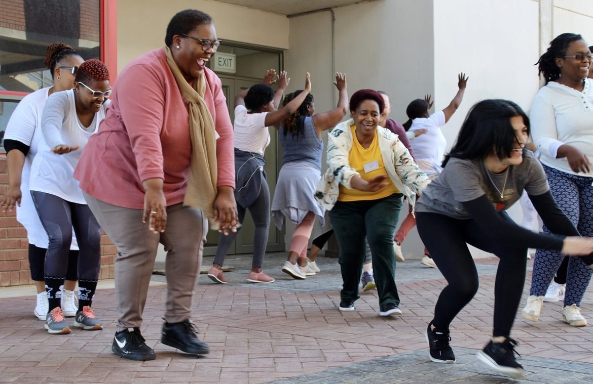 MOTIVATED TO MOVE: Teachers participating in an energising physical activity session during the Physical Education professional development workshop at Nelson Mandela University.