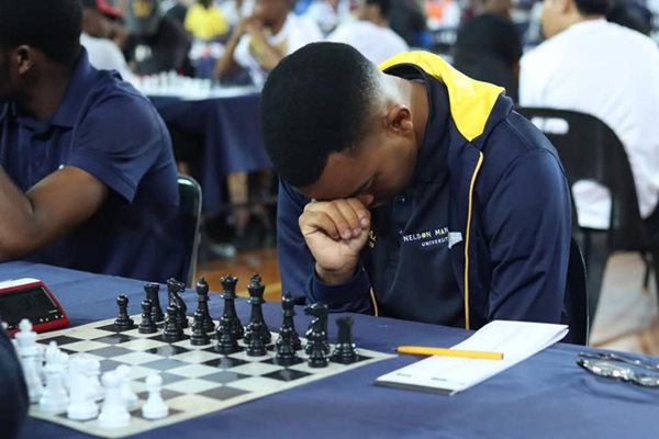 Nigel Bezuidenhout, a member of the Madibaz chess team for the upcoming University Sports South Africa tournament, focuses during a match at last year’s event.